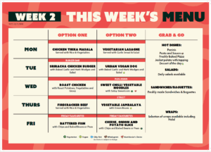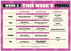 The main lunch options are prepared on a three-week cycle to ensure variety. We always start the new half term on a Week One menu.