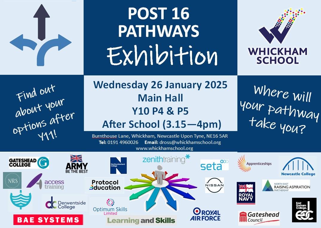 #FEColleges #WhickhamSixth #Apprenticeships #TrainingPoviders #ArmedForces & #University, to help them make well-informed decisions about their life after Y11
