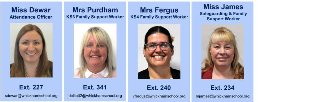 Below you will find details of the key staff members responsible for Pupil Support, all can be contacted on the main school telephone number 0191 496 0026 (their extension numbers are shown)
