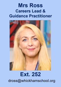 I’m Mrs Ross and I’m the School’s qualified Careers Guidance Advisor. My role includes the delivery of professional and quality independent Careers Advice and Guidance to Whickham pupils.